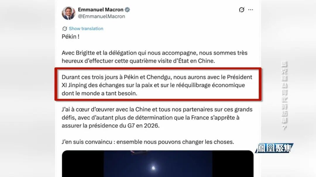 国际局势复杂,法国利益关切众多,亟需与中国沟通。其既代表法国,也代表欧盟,且身为明年G7轮值主席国,此行不仅谋求解决自身问题,更欲展现法国或马克龙的领导力。